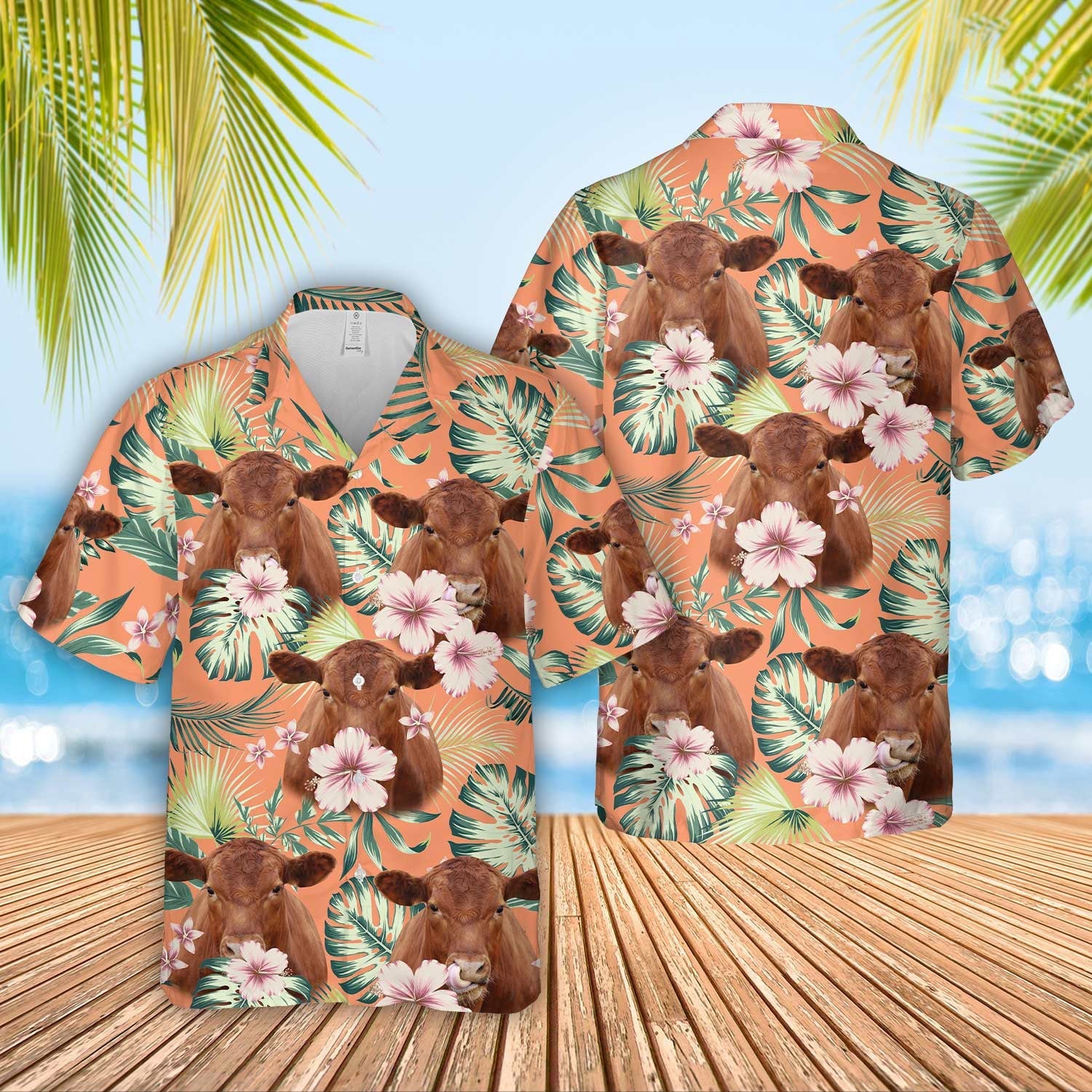 Unique Red Angus Summer Happiness Floral Farm 3D Hawaiian Shirt