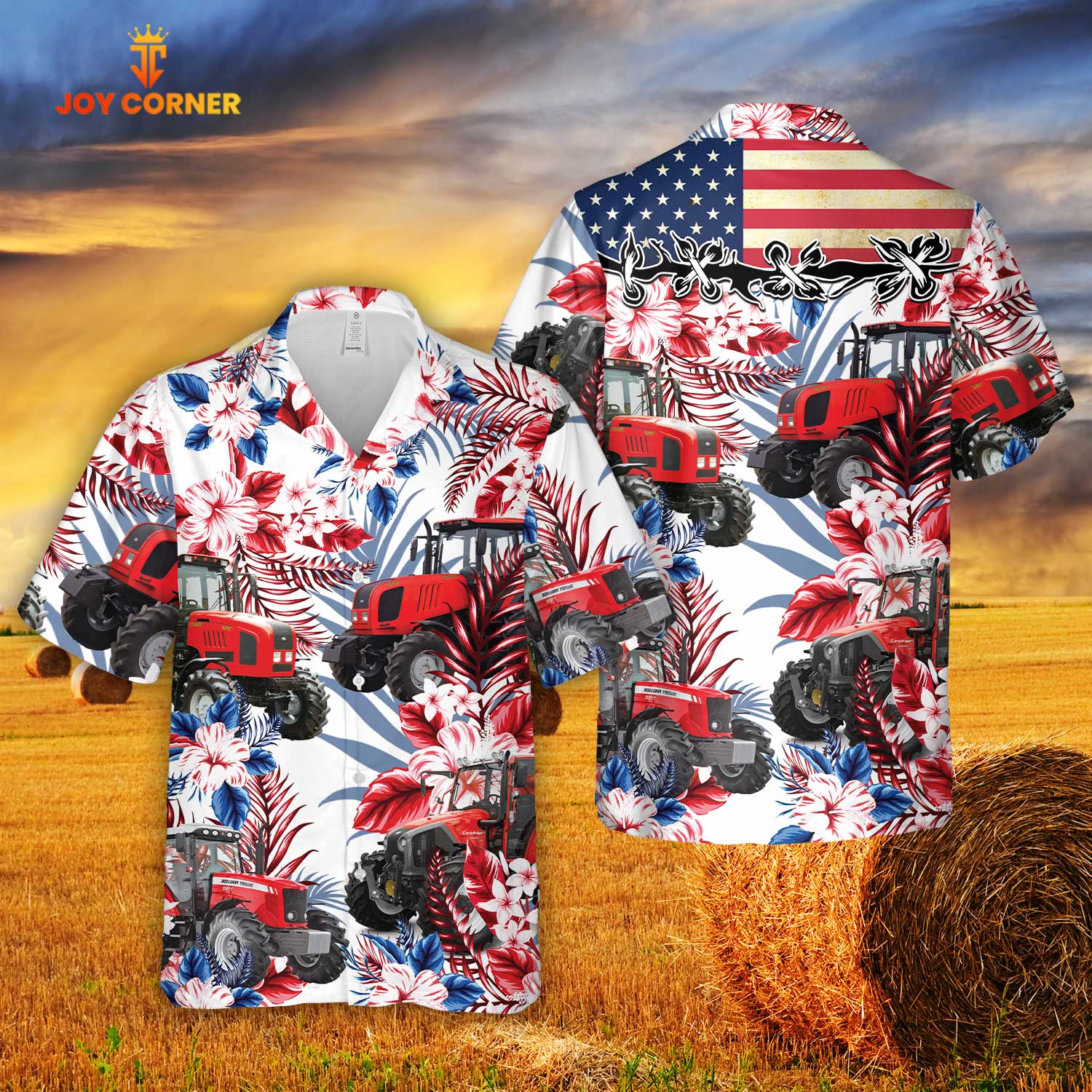 Unique Red Tractors American Flag Hawaiian Flowers All Over Printed 3D Hawaiian Shirt