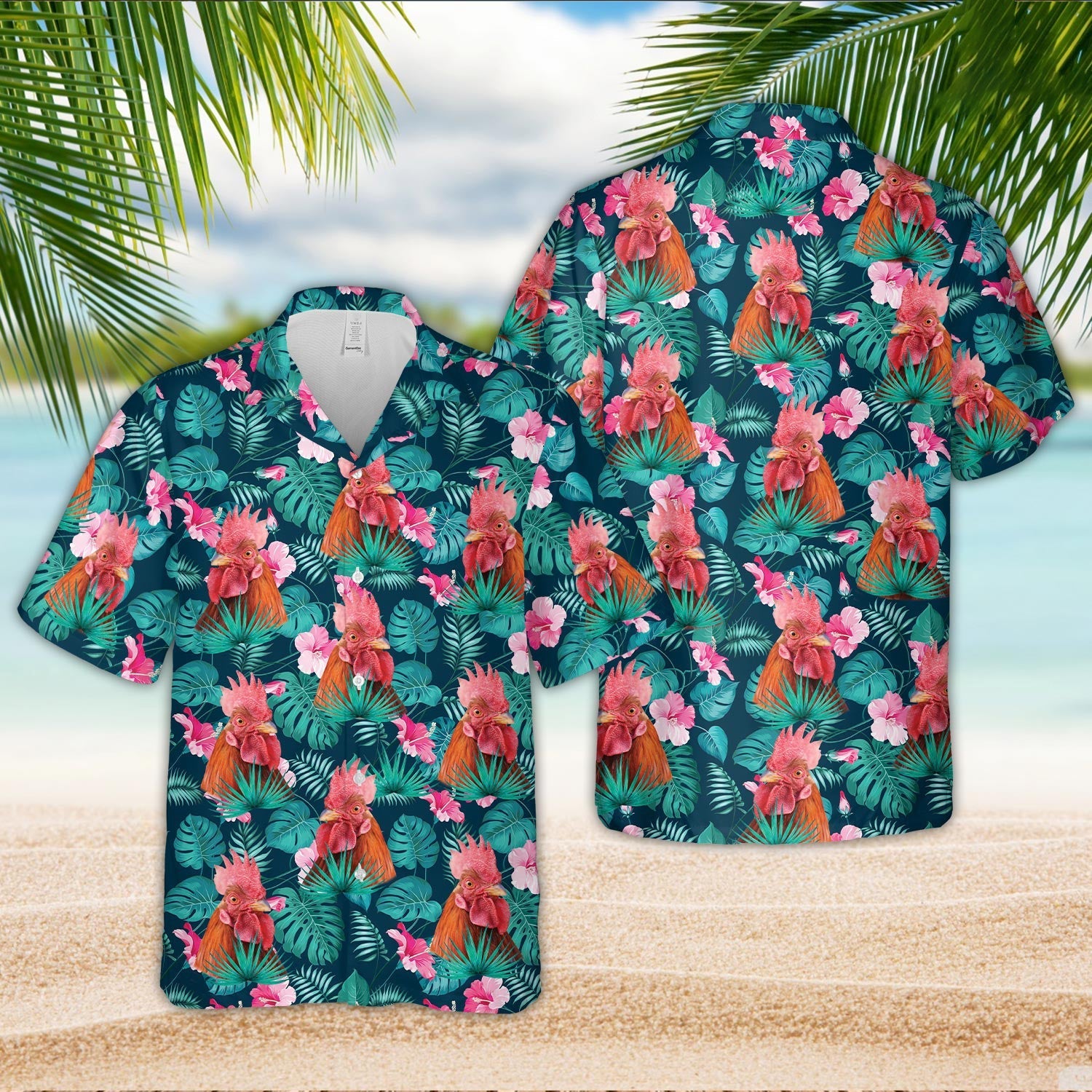 Unique Rooster Blue Floral Summer 3D Hawaiian Shirt