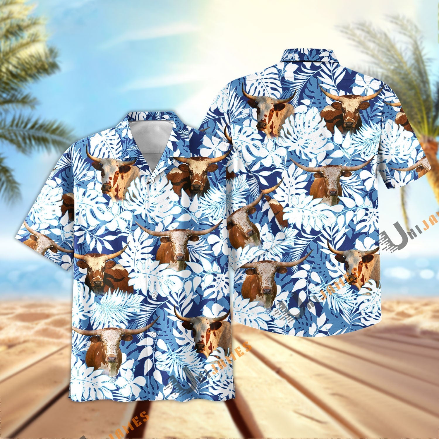 Unique Texas Longhorn Blue Summer Pattern Hawaiian Shirt