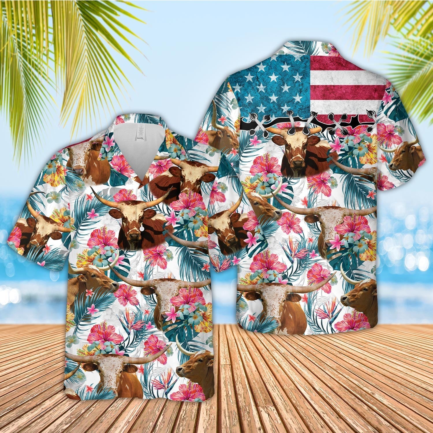 Unique Texas Longhorn Happiness Floral 3D Hawaiian Shirts