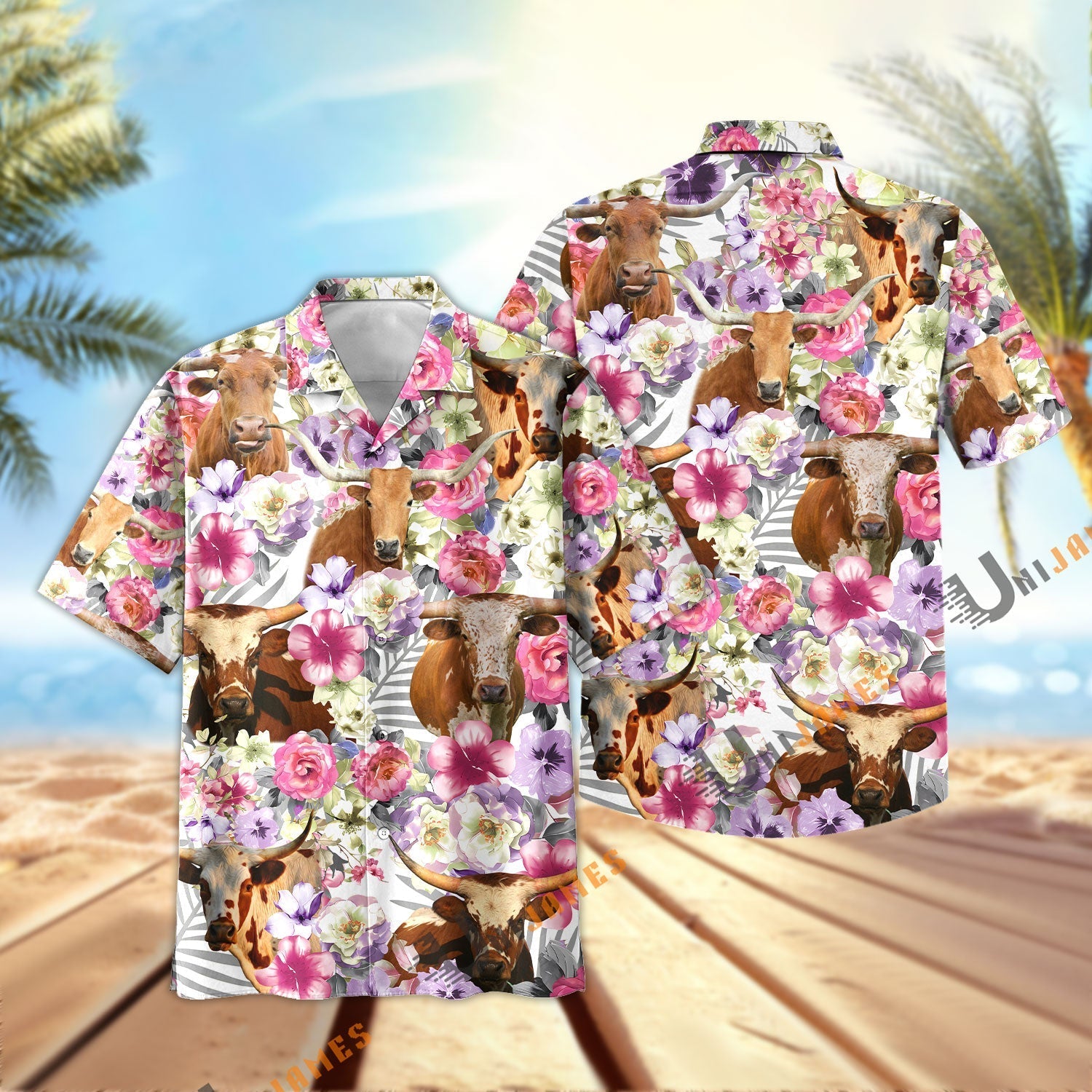 Unique Texas Longhorn Seamless Floral Pattern 3D Hawaiian Shirt