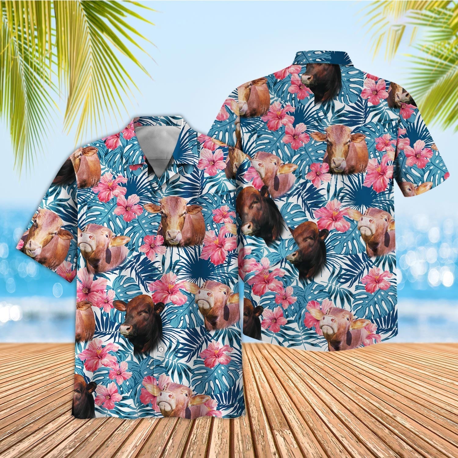 Unique Tropical Beefmaster Blue Pink Floral 3D Hawaiian Shirt