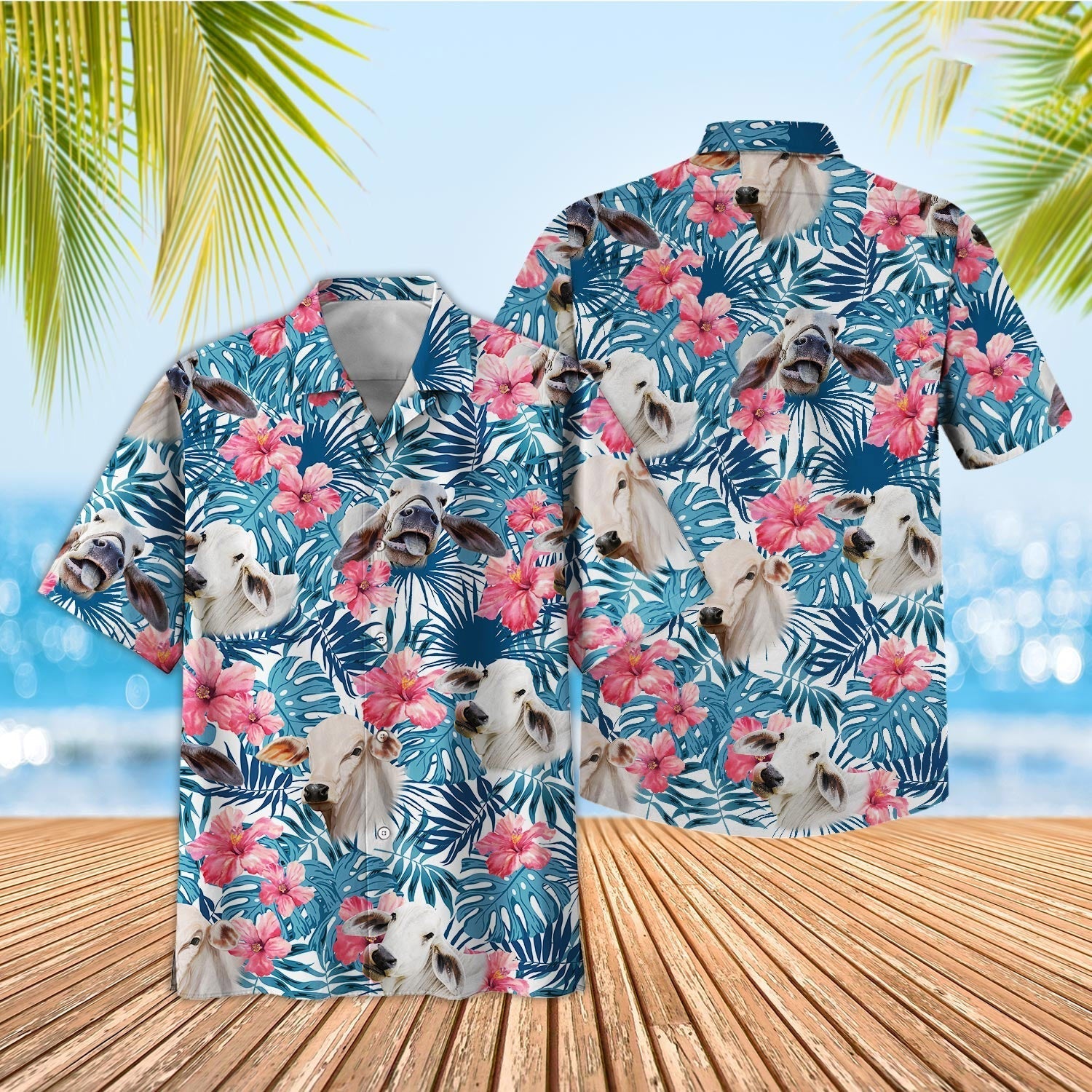 Unique Tropical Brahman Blue Pink Floral 3D Hawaiian Shirt