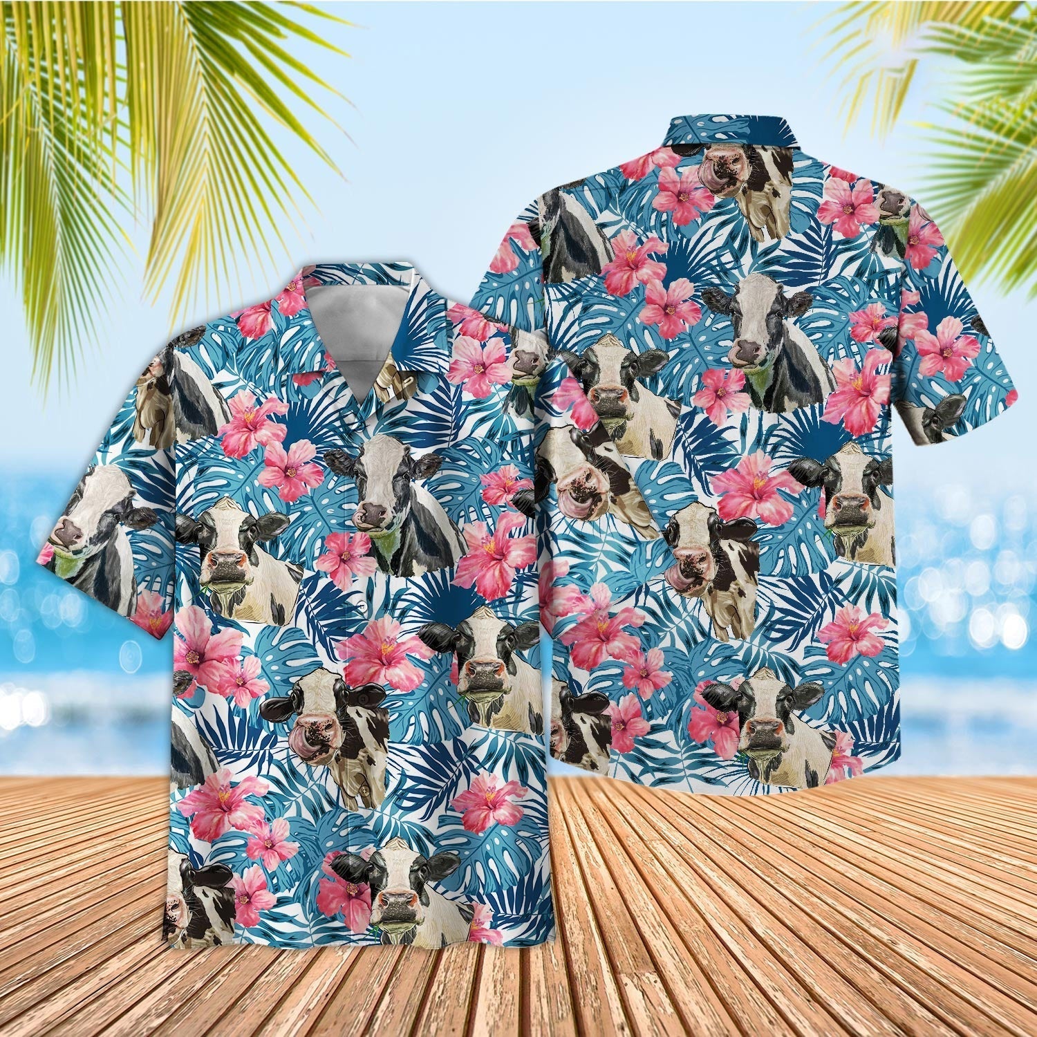 Unique Tropical Holstein Blue Pink Floral 3D Hawaiian Shirt